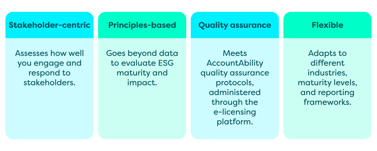 AA1000 stands out because it goes beyond data verification. It provides a principle-based, stakeholder-focused evaluation of how sustainability is embedded in your organisation. Key differentiators include: