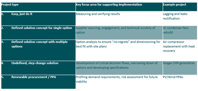 Figure 2: Typical project categories identified in Net Zero roadmaps