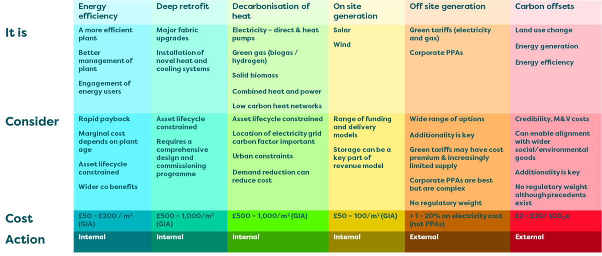 Decarbonisation pathways can be considered to have six aspects which range widely in costs, as shown in the figure