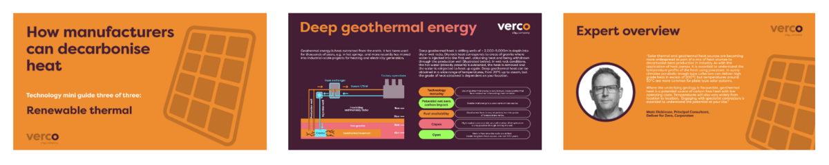 That’s why we’ve created a series of guides to support your knowledge of what’s out there for heat decarbonisation. The third guide is now available as an on-demand webinar and PDF. It explores and compares deep geothermal energy, solar thermal panels and solar thermal concentrators, outlining the key considerations and benefits of each.