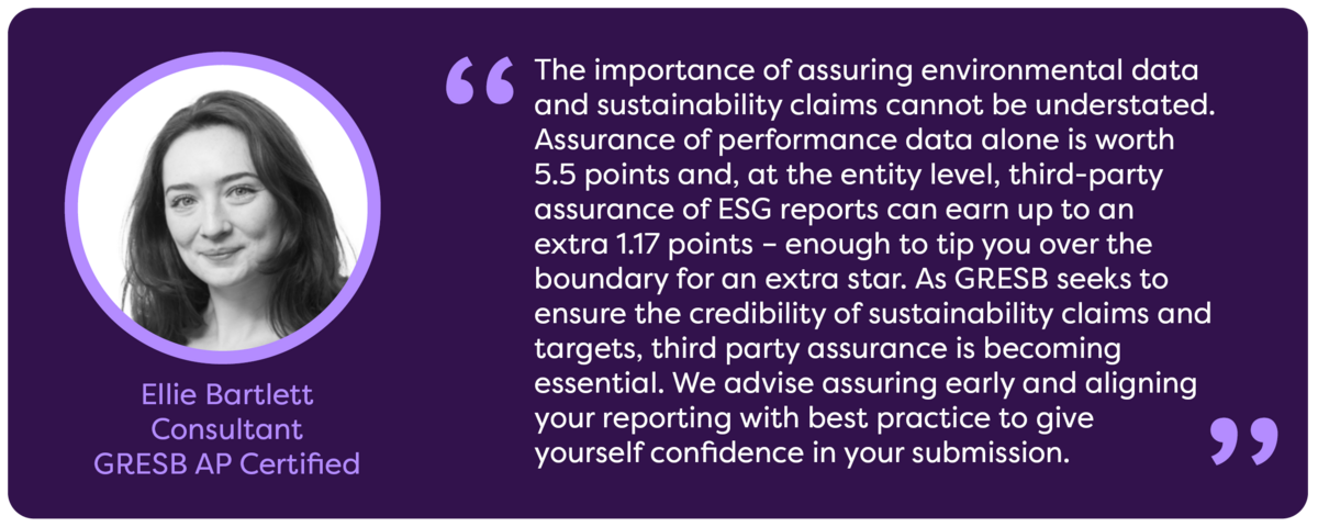 GRESB places a high value on reliability, so it’s important to show that your reporting is accurate and trustworthy. A third-party assurance assessment meets this requirement by verifying that the data in your submission is reliable.