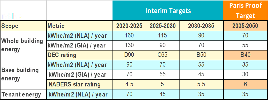 The 2030-35 challenge is possibly where the pips may begin squeaking, with base building rating expected to be 5.5 stars, but it is only a further 22% reduction after 10 years of climate emergency-driven technology and operational process development from today, the reduction expected incidentally to be spread evenly across base building and tenants.