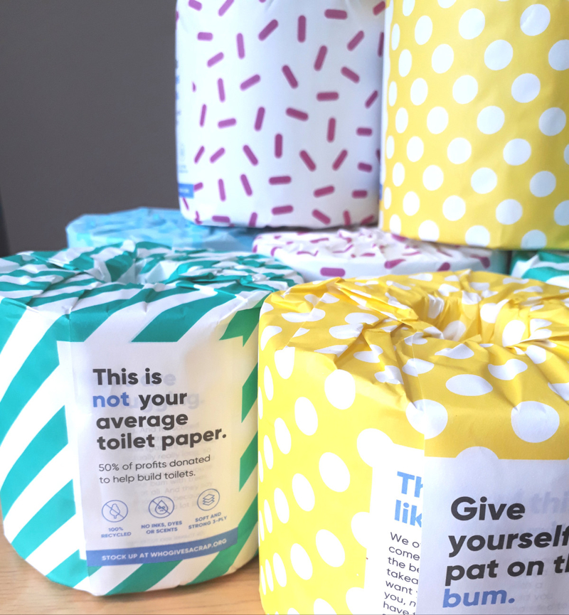 - We continue to purchase toilet roll from Who Gives a Crap, who deliver colourful paper-wrapped rolls in cardboard boxes and donate 50% of their profits to charity.
